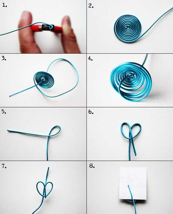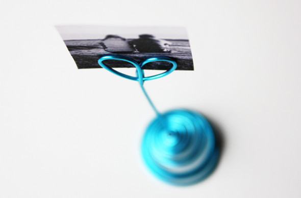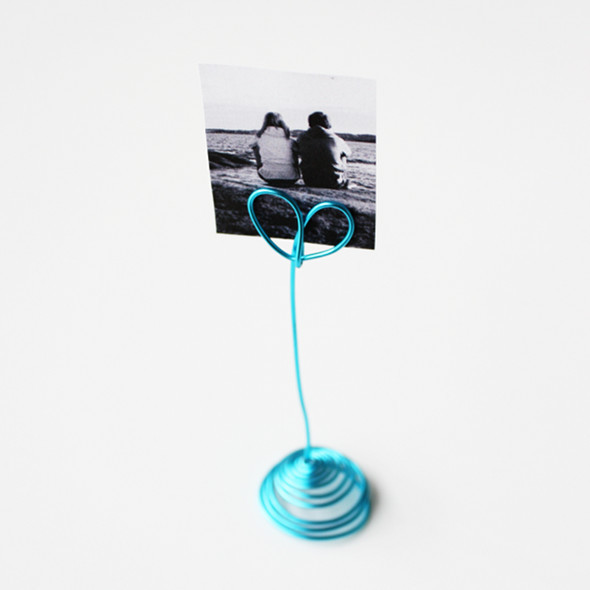 准备一根彩色铜线,用钳子将铜线如图缠绕,最后将照片夹在铜线之中就好了!