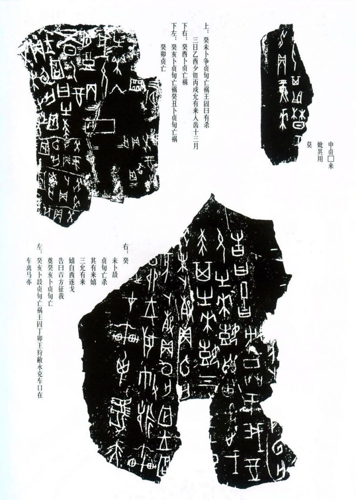 甲骨文因镌刻、书写于龟甲与兽骨上而得名,为殷商流传之书迹。